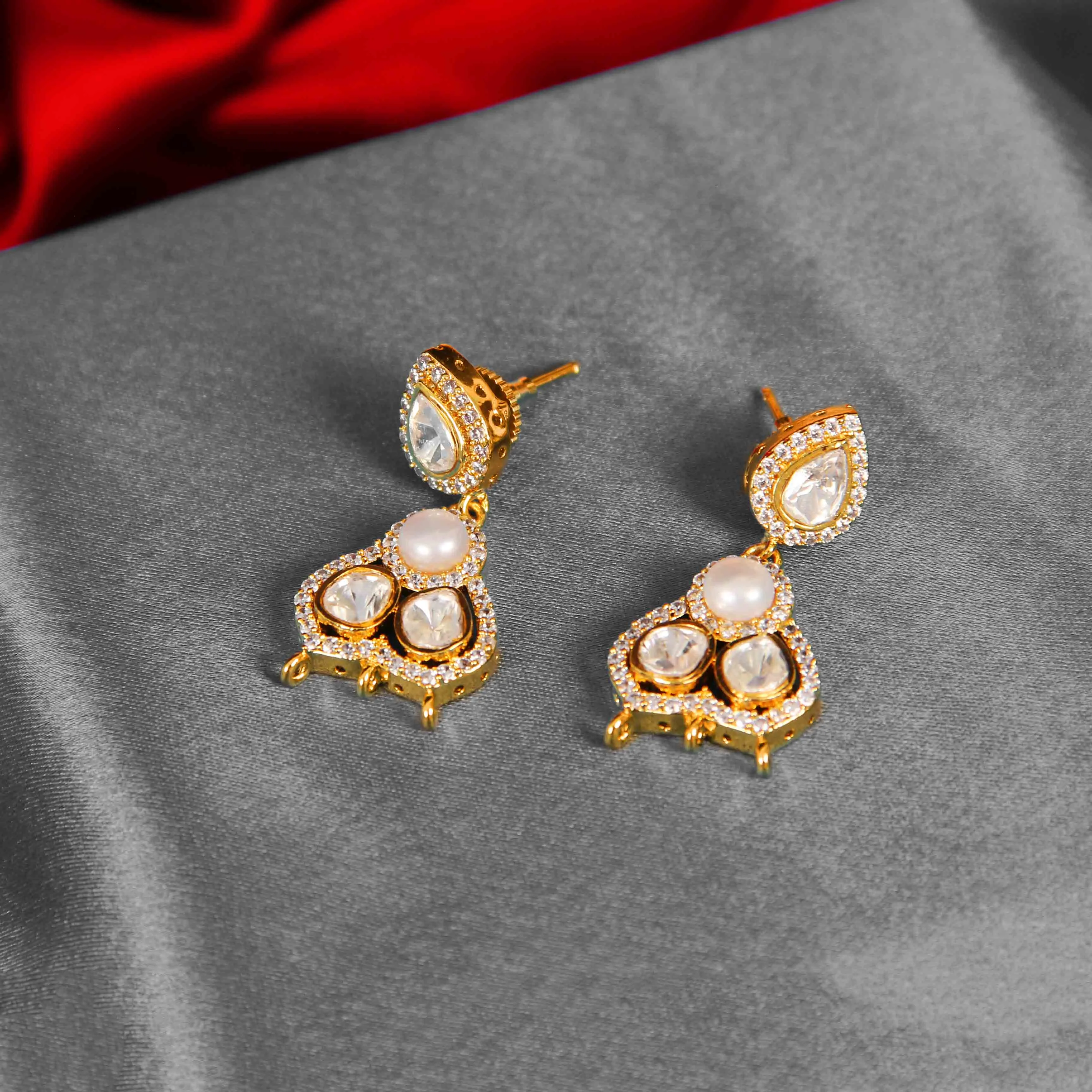 Imitation pearls, kundan stones, alloy base with gold-tone plating
