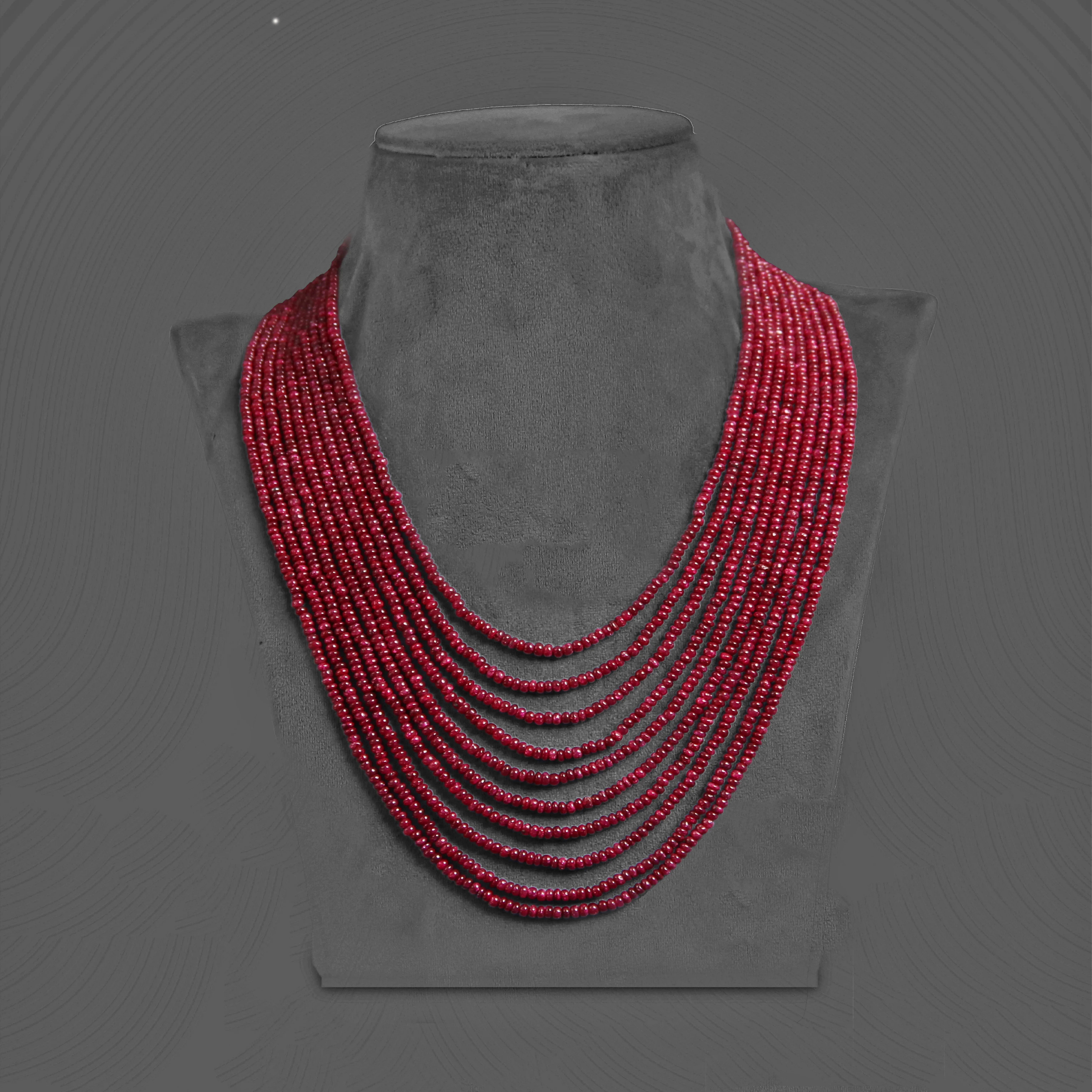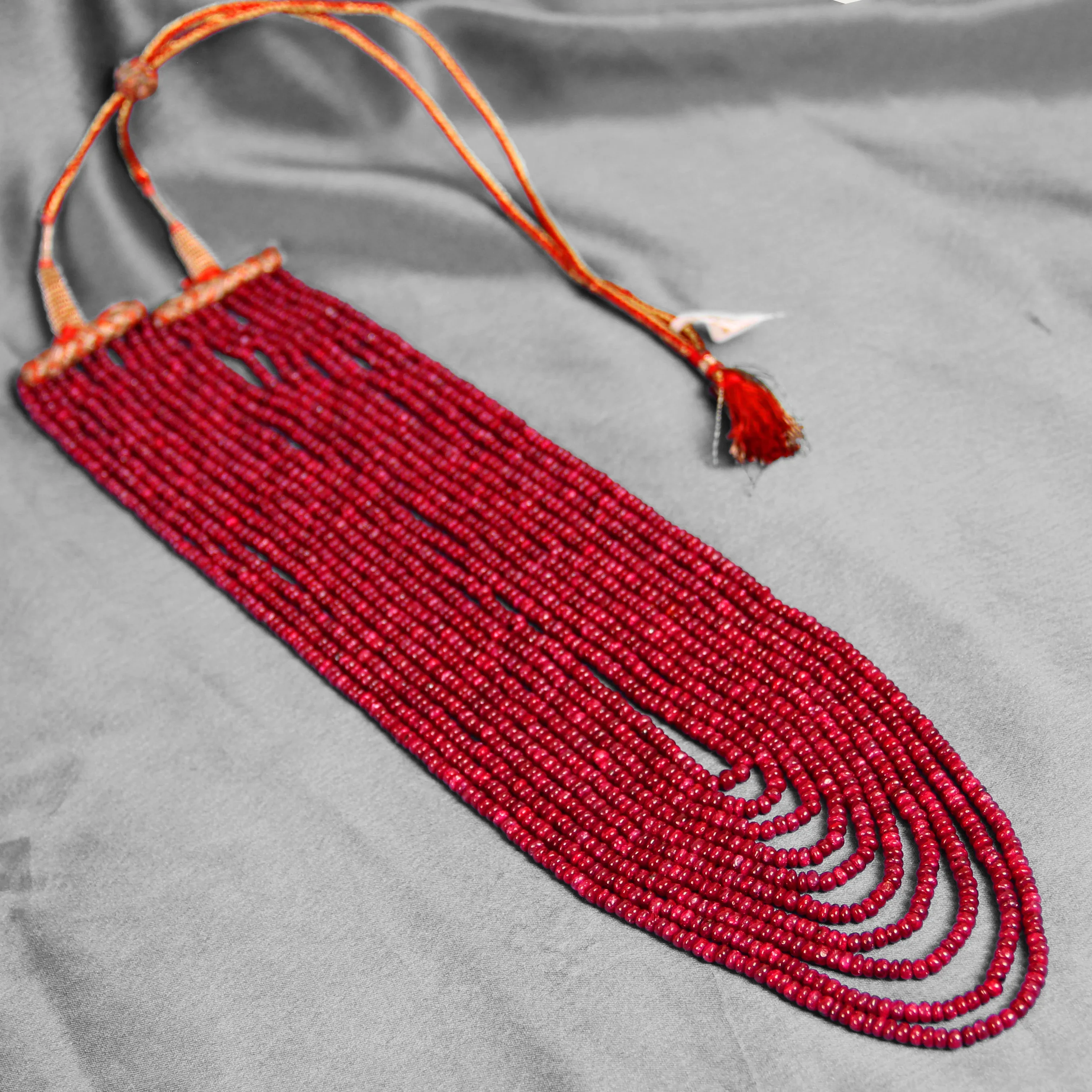Red multi-strand beaded necklace with colorful thread