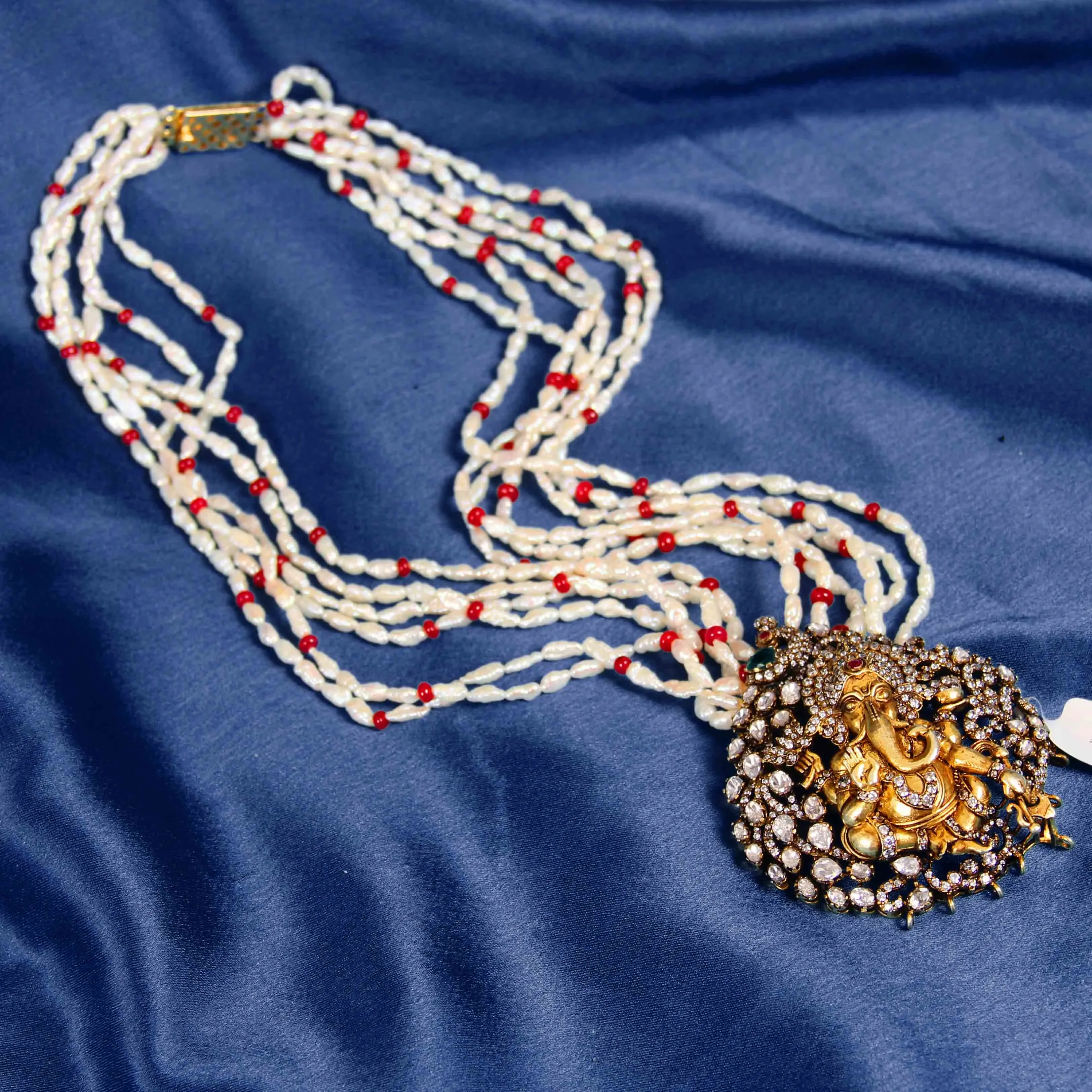 Ganesh Pendant Necklace with Pearl and Red Beads | Sandeep Creations