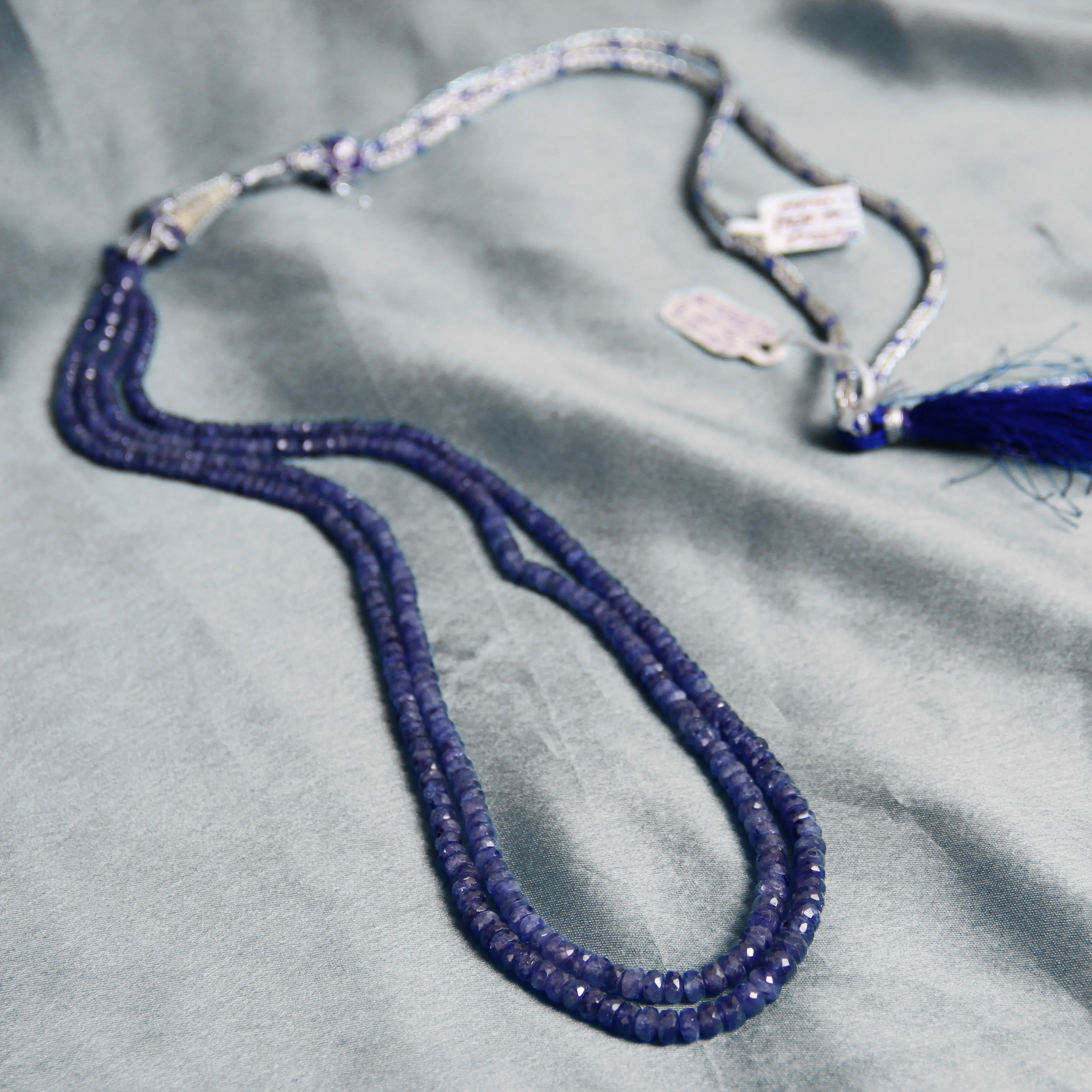 This exquisite sapphire beaded necklace is designed with faceted stones for a refined and elegant appearance, making it a perfect accessory for formal and evening events.
